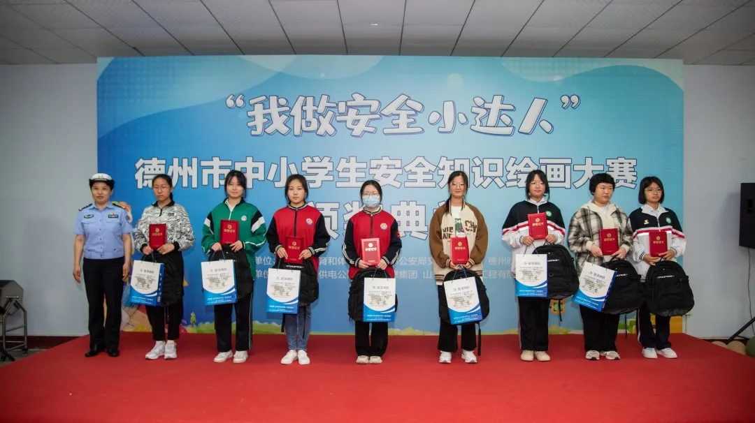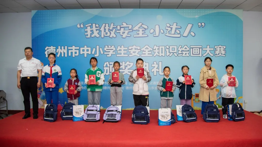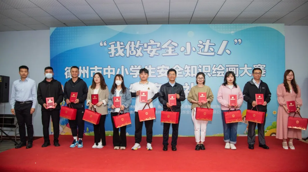 2023年5月27日上午,“我做安全小達(dá)人”德州市中小學(xué)生安全知識(shí)繪畫大賽活動(dòng)頒獎(jiǎng)典禮在德州通懋集團(tuán)隆重舉行。出席本次典禮的有德州市公安局交通警察支隊(duì)黨委委員、副支隊(duì)長(zhǎng)王東、德州市教育和體育局安全科科長(zhǎng)歐杰、德州市公安局交通警察支隊(duì)宣傳教育科科長(zhǎng)楊紅省、德州晚報(bào)社副社長(zhǎng)單歆歆、德州通懋集團(tuán)董事長(zhǎng)蘇愛英、山東金澤消防工程有限公司董事長(zhǎng)沙志勇。